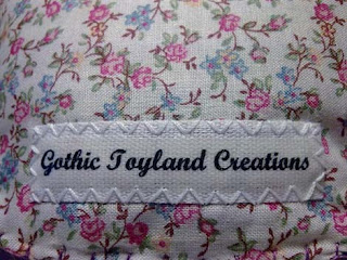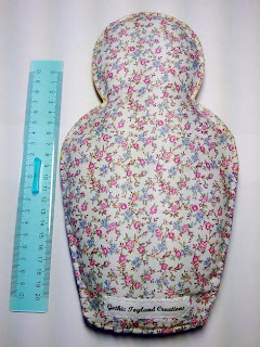 The back as you can see, even if the picture is horrible, it is in the American fabric and the label (printed by me - found the tutorial here) mastered the expanse of pink flowers! The "small" is about 27cm in height.