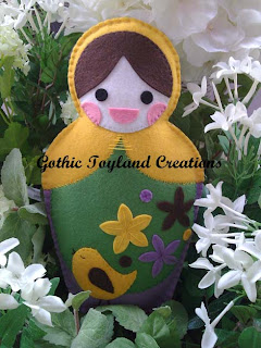 It 's a Matrioska Felt and Fabric ... COMPLETELY is sewn by hand (I have a sewing machine in the closet but alas I can not use it) and all its parts have been cut from my holy hands without the use of dies or the like. So a big job! It took me three evenings to cut parts, choose the colors, the whole assembly, sewing, quilting (already because the "puppy" is padded !!!), print the label e. .. SUBMIT !