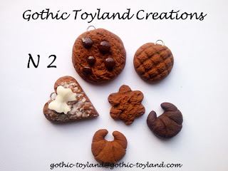 Three Fimo pendants ideal for mounting on a bracelet, measuring about 1.5 cm, and three applications, always in Fimo, also modeled by hand to be used where do you like best. The bow of a heart pendant was made with Fimo Dry